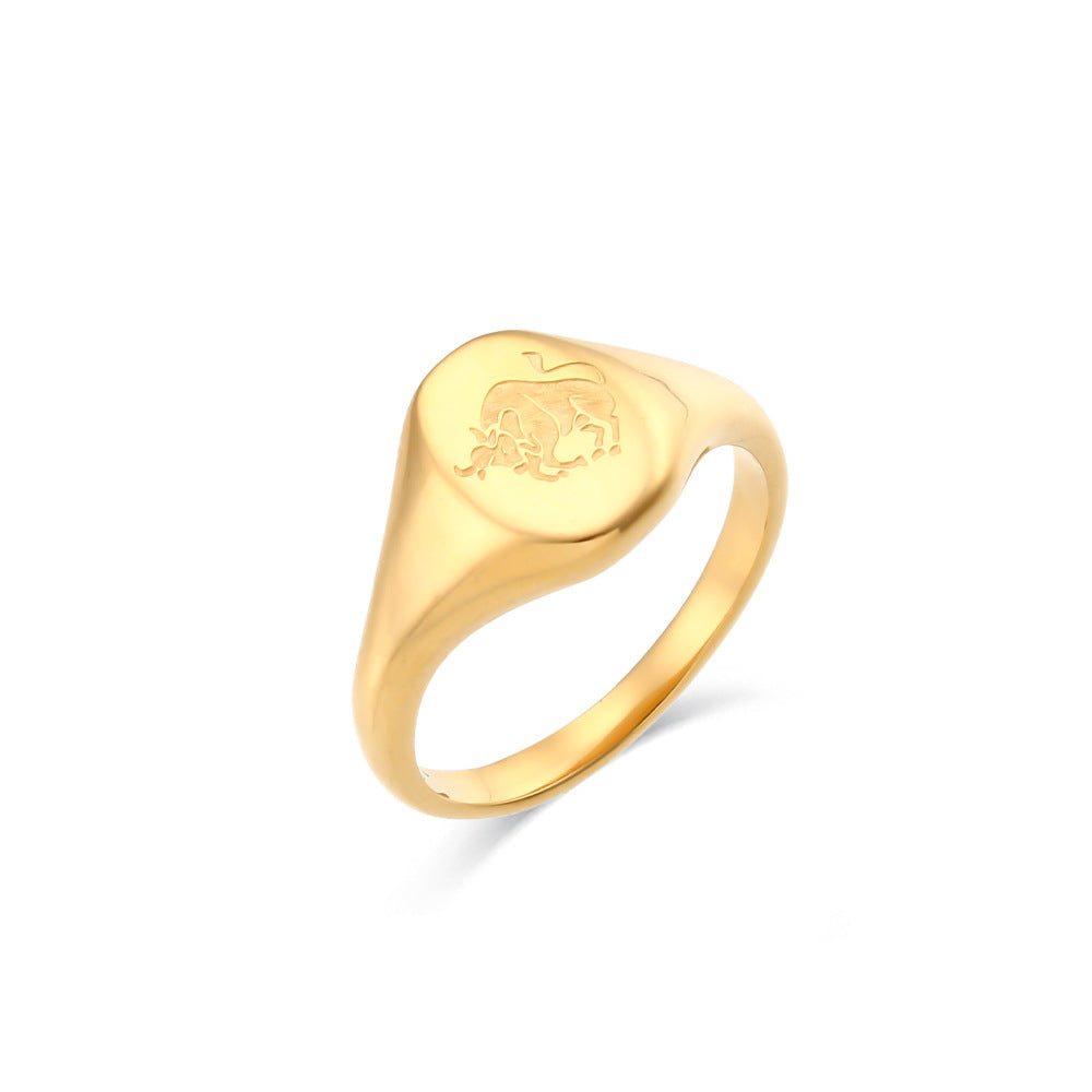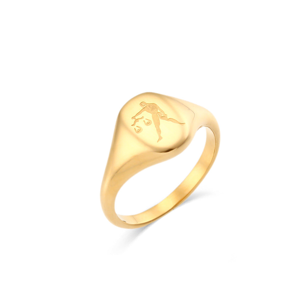 Minimalist Women Circle Zodiac Sign Stainless Steel 18K Gold Plated Rings