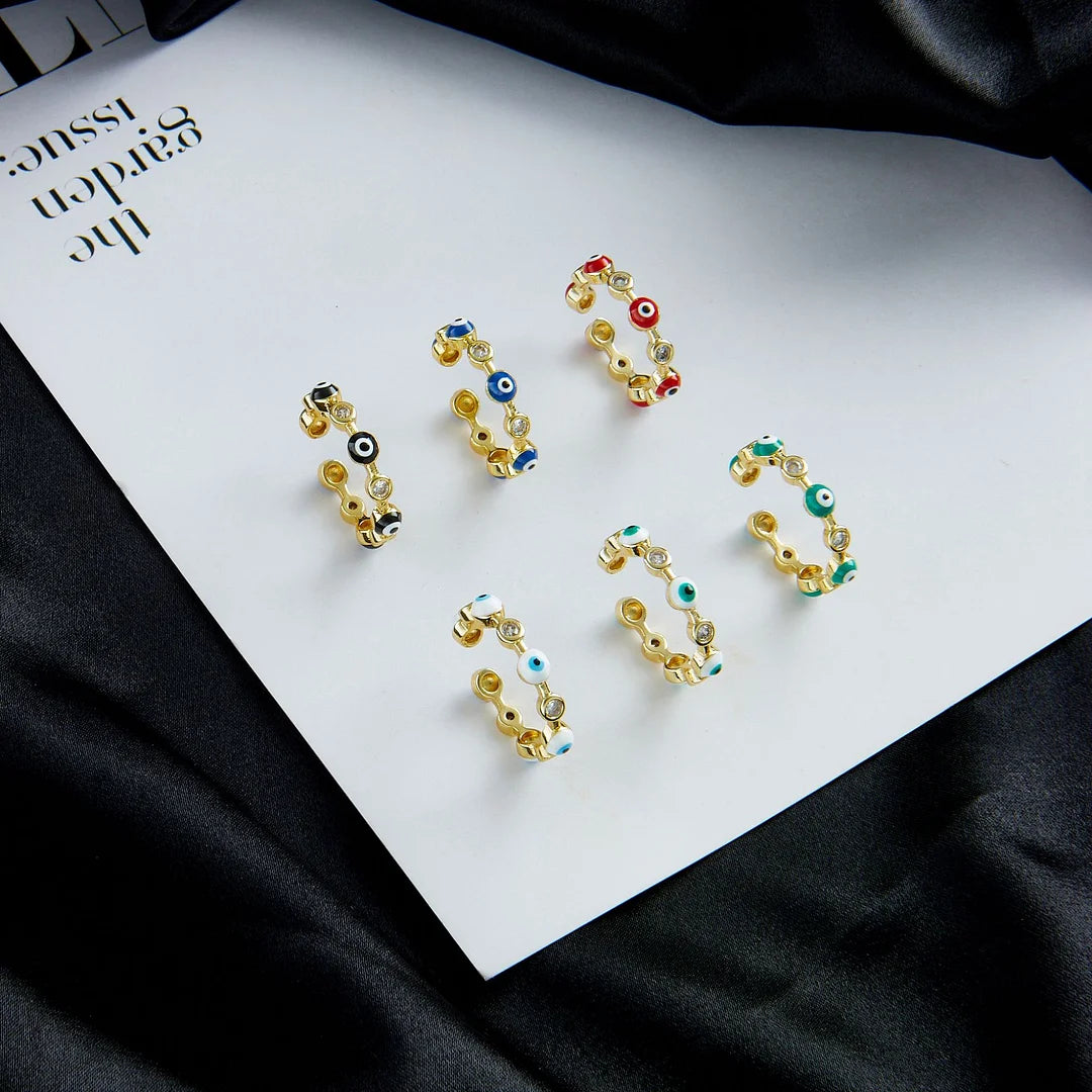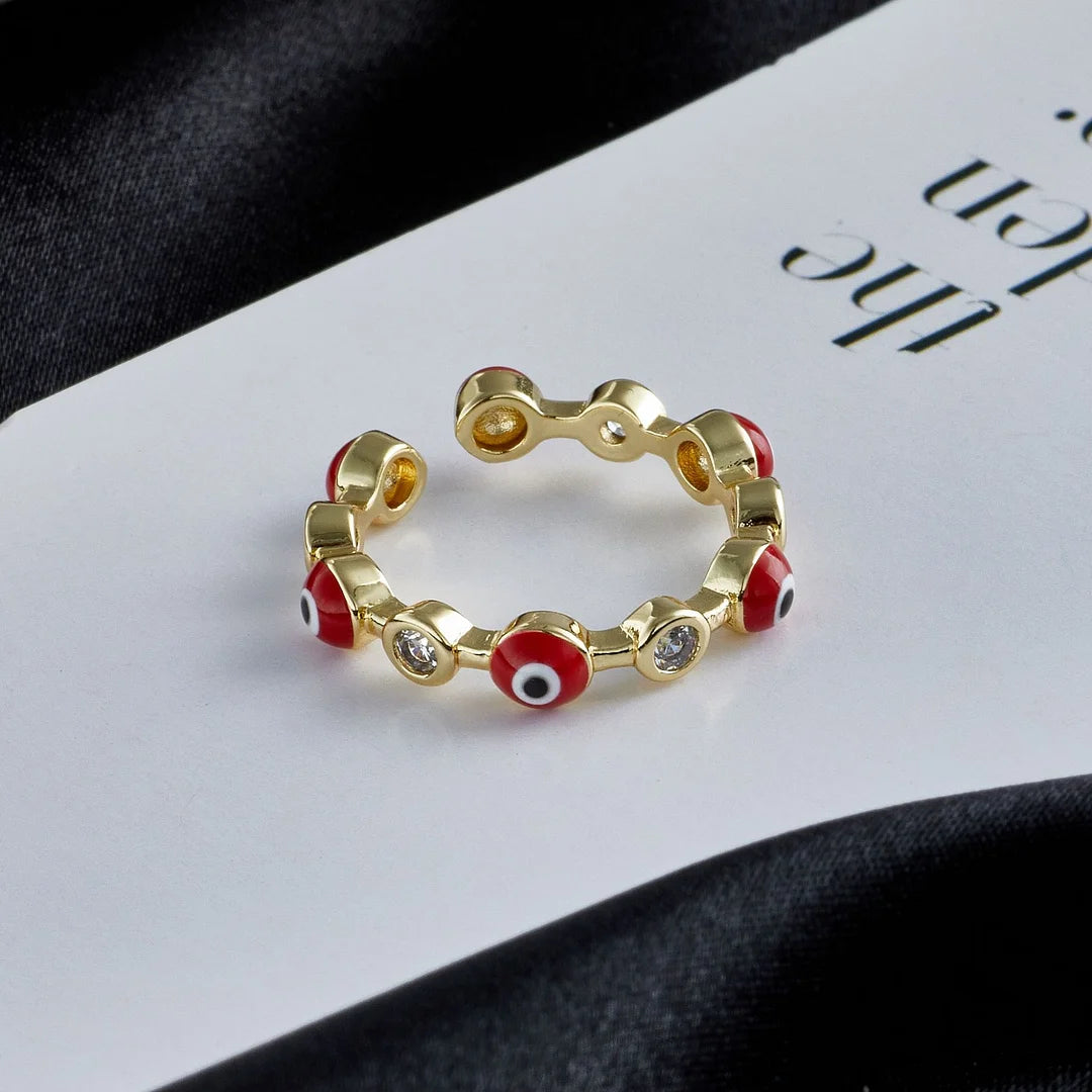 Minimalist Women Evil Eye Geometric Copper Inlay Rings