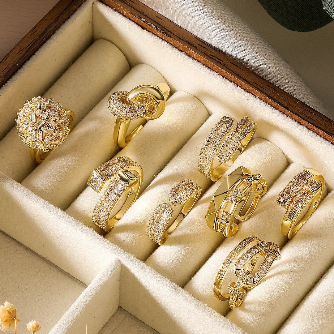 Minimalist Women Irregular Geometric Copper Inlay Rings