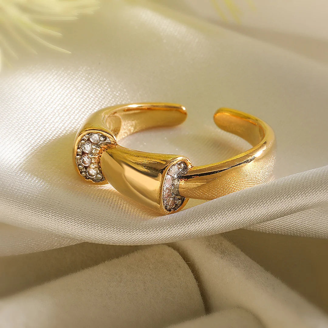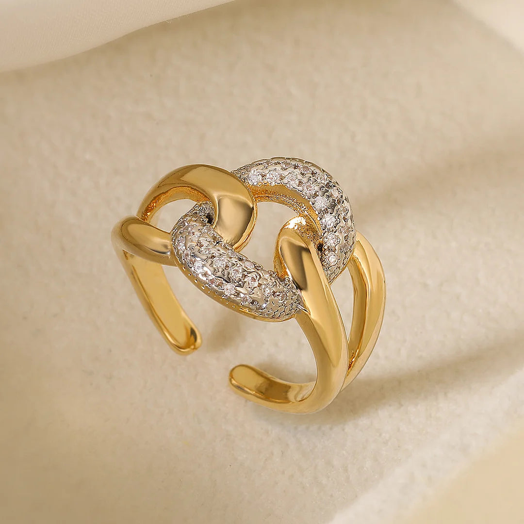 Minimalist Women Irregular Geometric Copper Inlay Rings