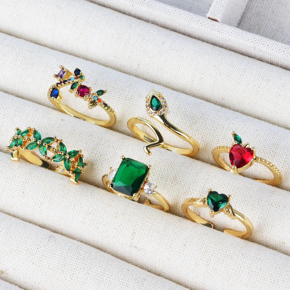 Moderate Luxury Women Fan-Shape Square Heart Circle Gold Plated Copper Rings