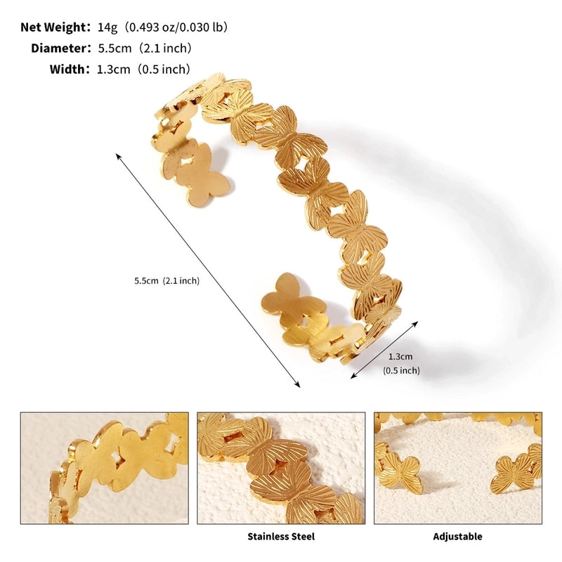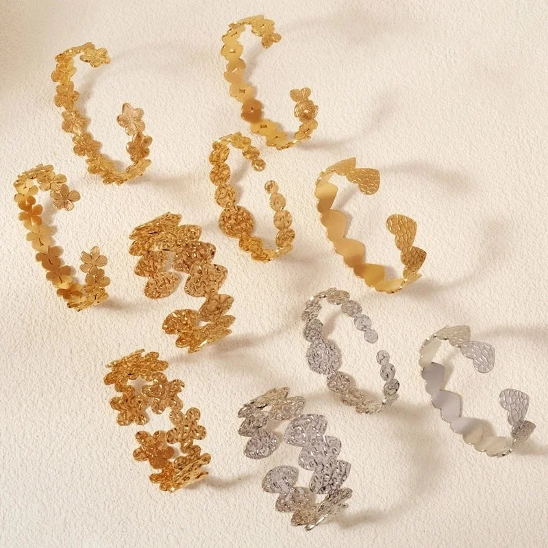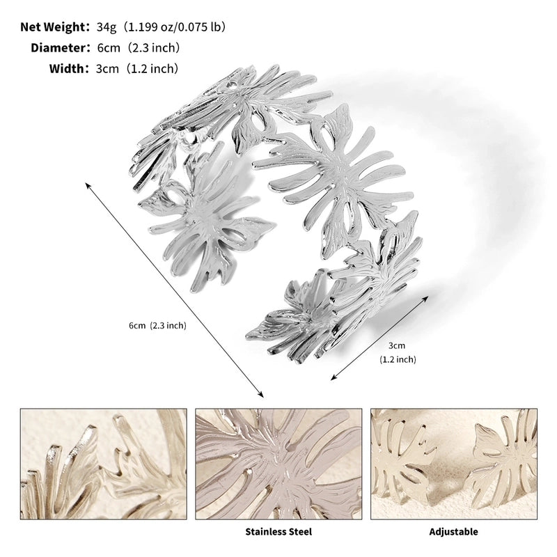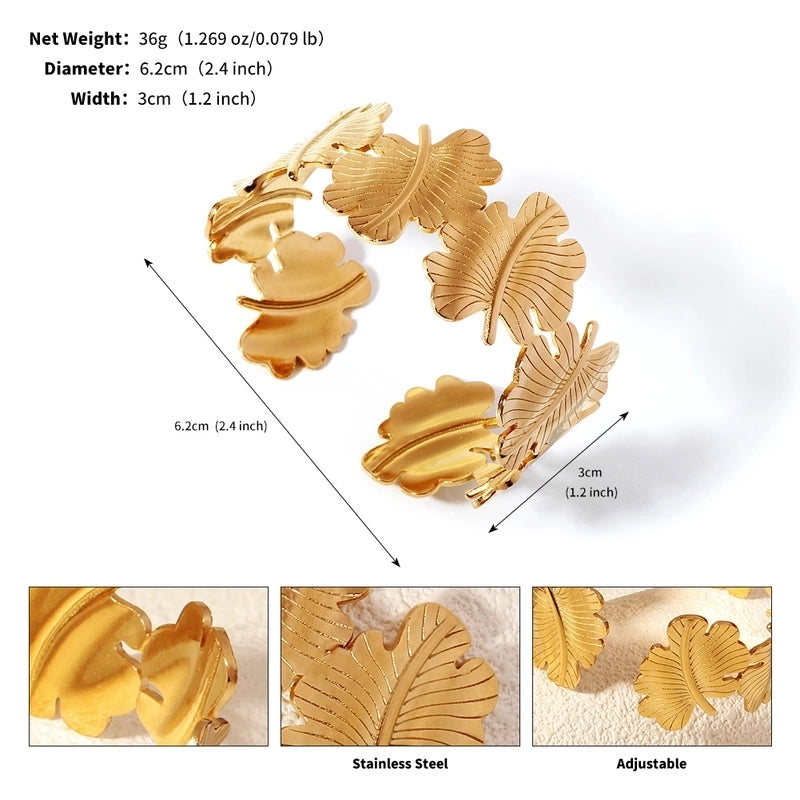 Modern Style Geometric Plant 304 Stainless Steel 18K Gold Plated Bangle In Bulk