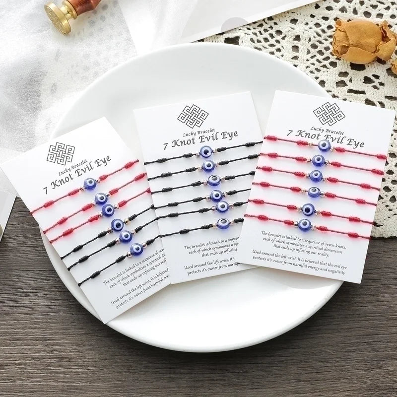 New Demon Eye Bracelet 7 Knot Lucky Red String Card Braided Bracelet 6 Piece Set
