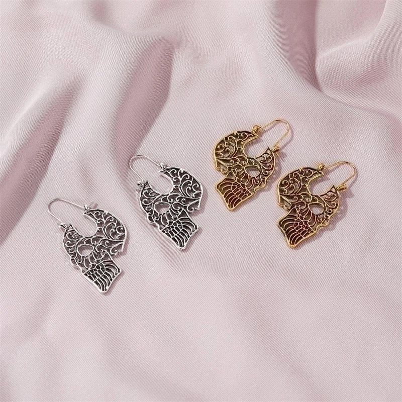 New Halloween Gothic Retro Hollow Carved Skull Earrings