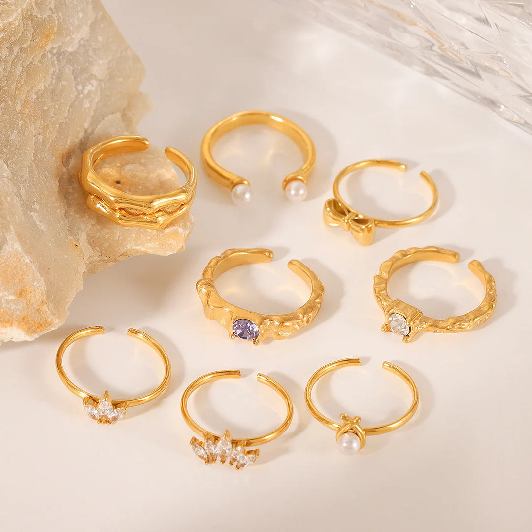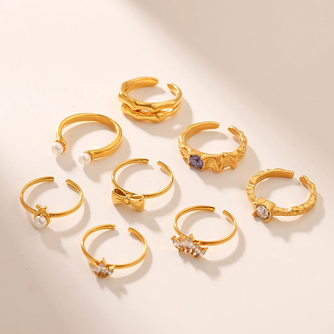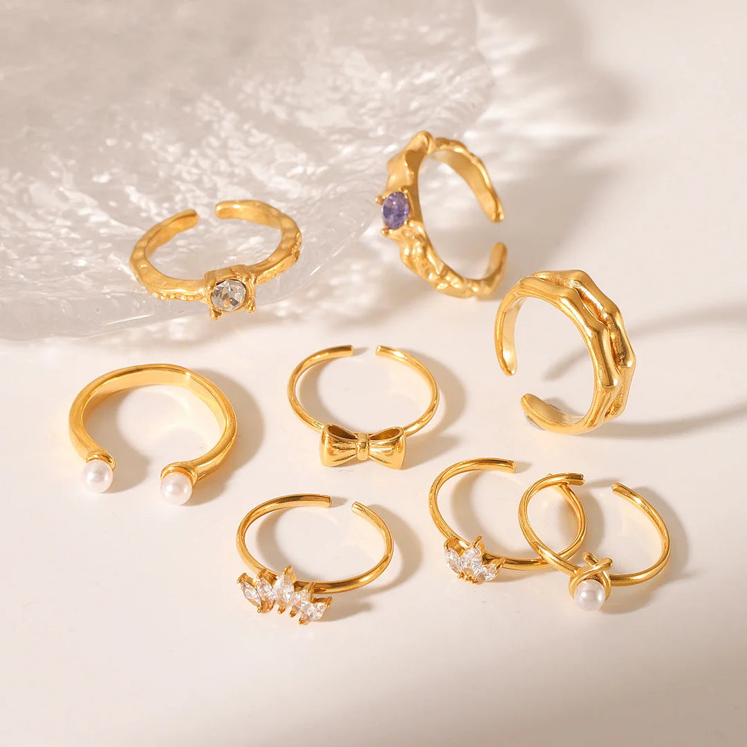 Open Ring IG Style Textured Pearl Bowknot Geometric Stainless Steel Zircon Inlay Rings