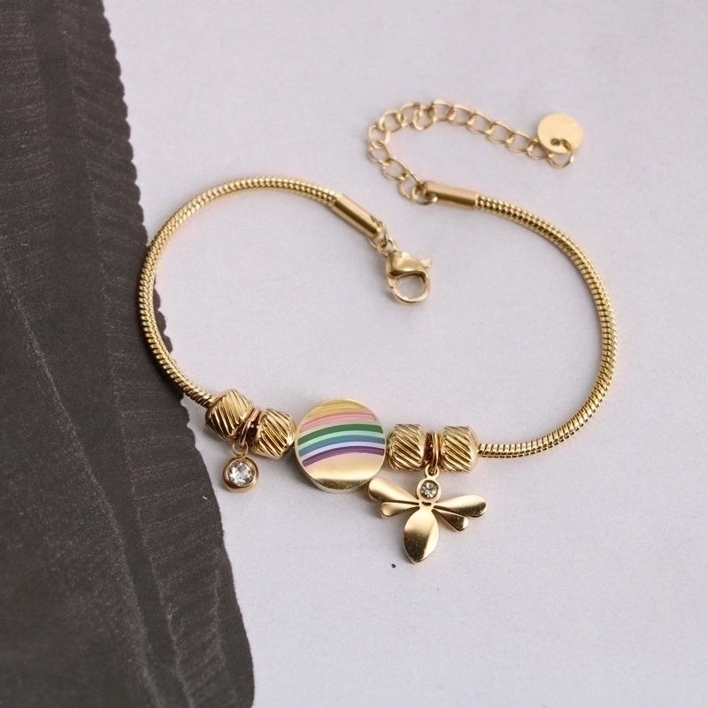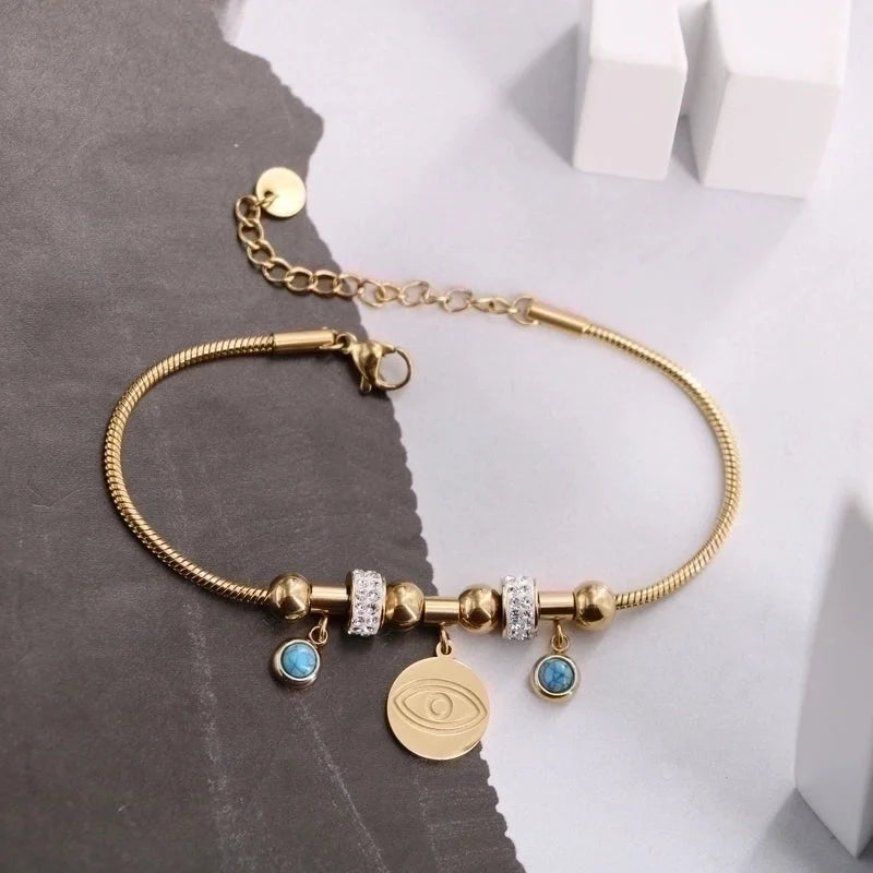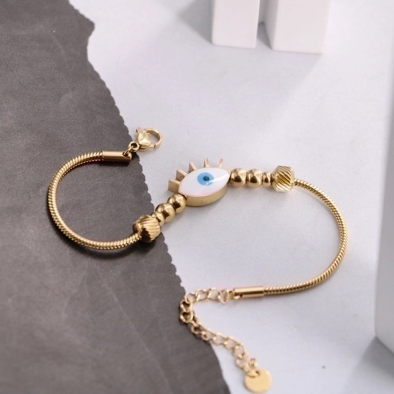 Original Design Devil\'S Eye Insect Waves Titanium Steel 18K Gold Plated Artificial Gemstones Bracelets In Bulk