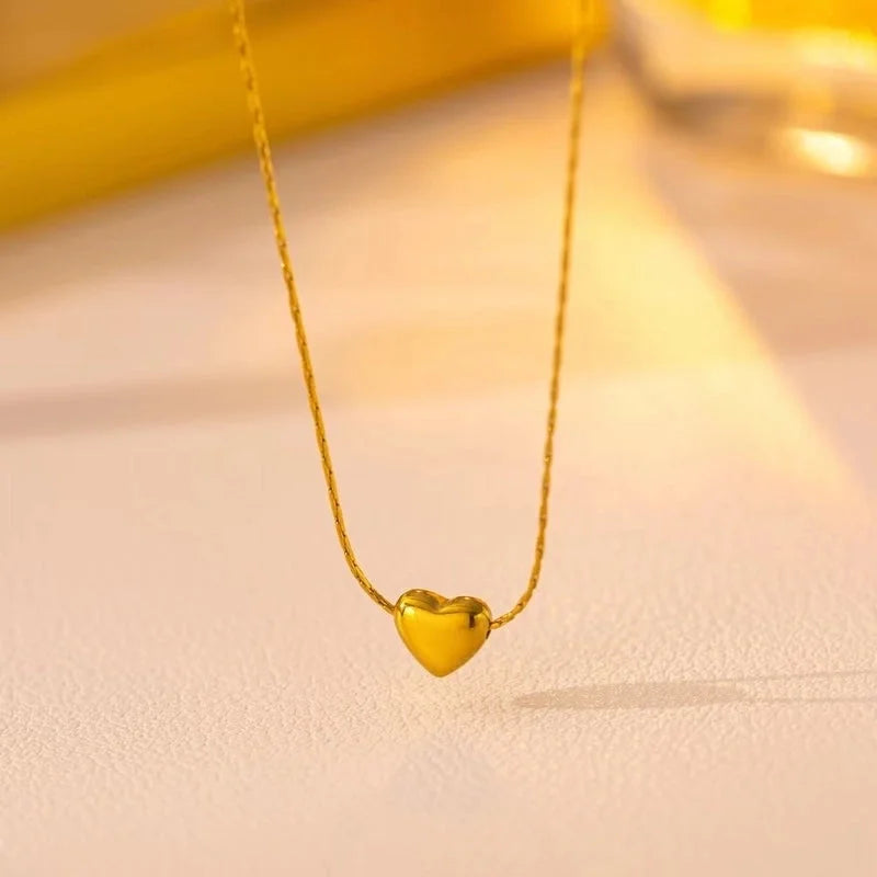Princess Classic Style Heart Shape 304 Stainless Steel 18K Gold Plated Pendant Necklace