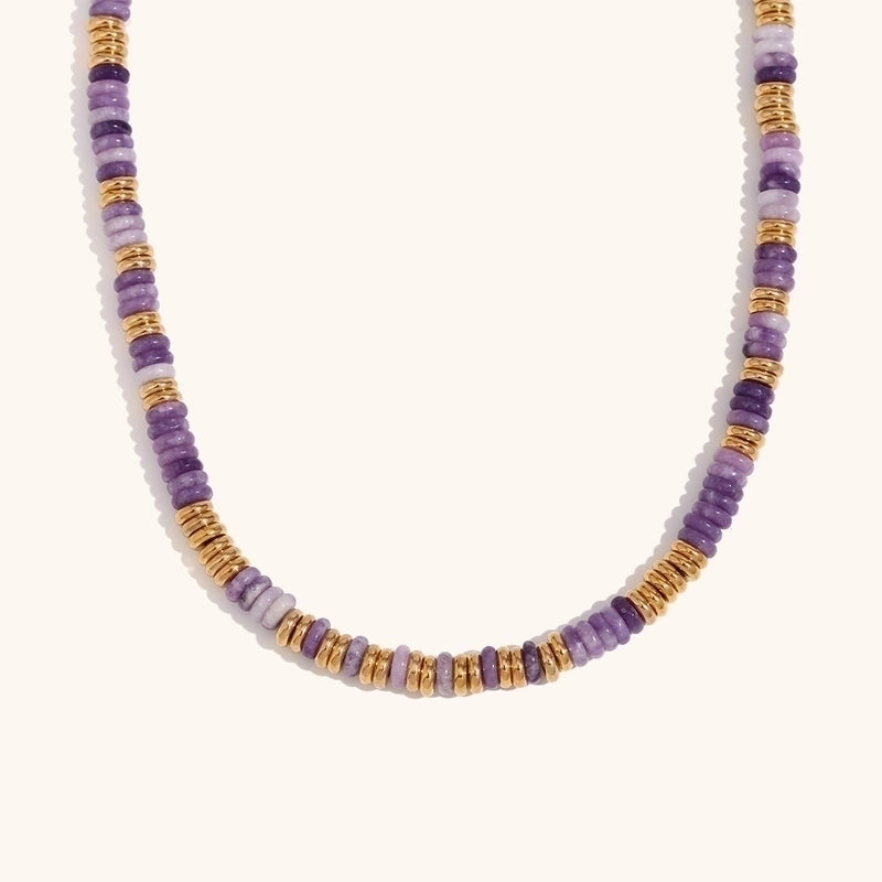 Retro Ethnic Style Geometric Stainless Steel Natural Stone 18K Gold Plated Necklace In Bulk