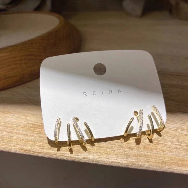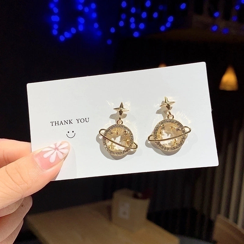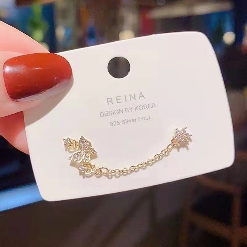 2 Pieces Retro Flower Copper Inlay Zircon Drop Earrings Ear Studs 1 Pair