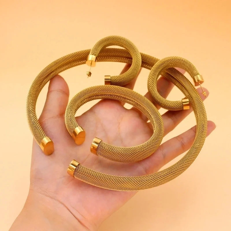 Retro French Style Solid Color 304 Stainless Steel Plating Bracelets Earrings Necklace