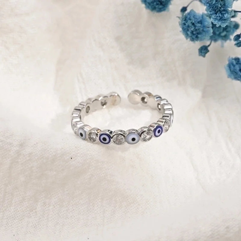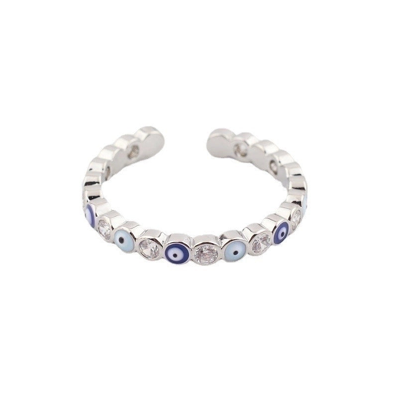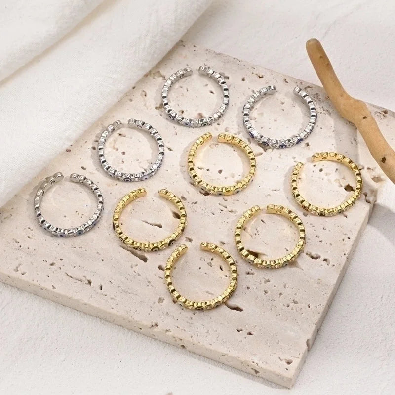 Retro Geometric Eye Copper Zircon Open Ring In Bulk
