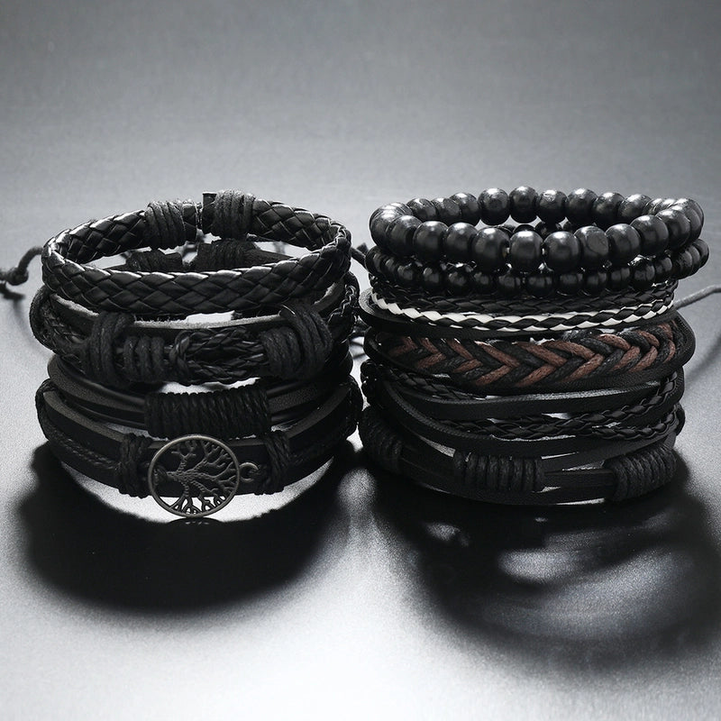 Retro Geometric Life Tree Pu Leather Unisex Bracelets