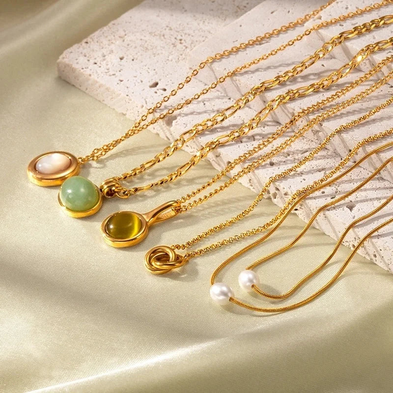 Retro Geometric Round Titanium Steel Agate Tiger Eye Plating Pendant Necklace
