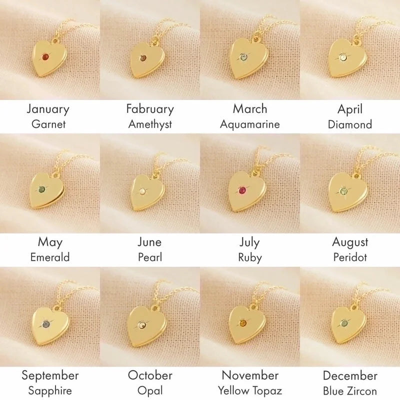 Retro Heart Shape Titanium Steel Copper 14k Gold Plated Birthstone Pendant Necklace In Bulk