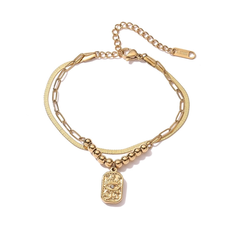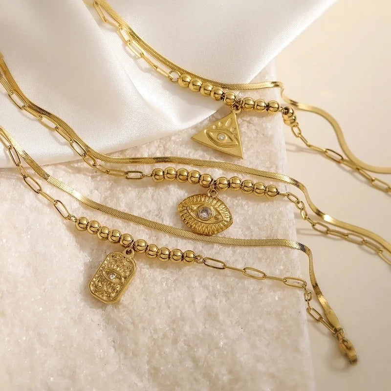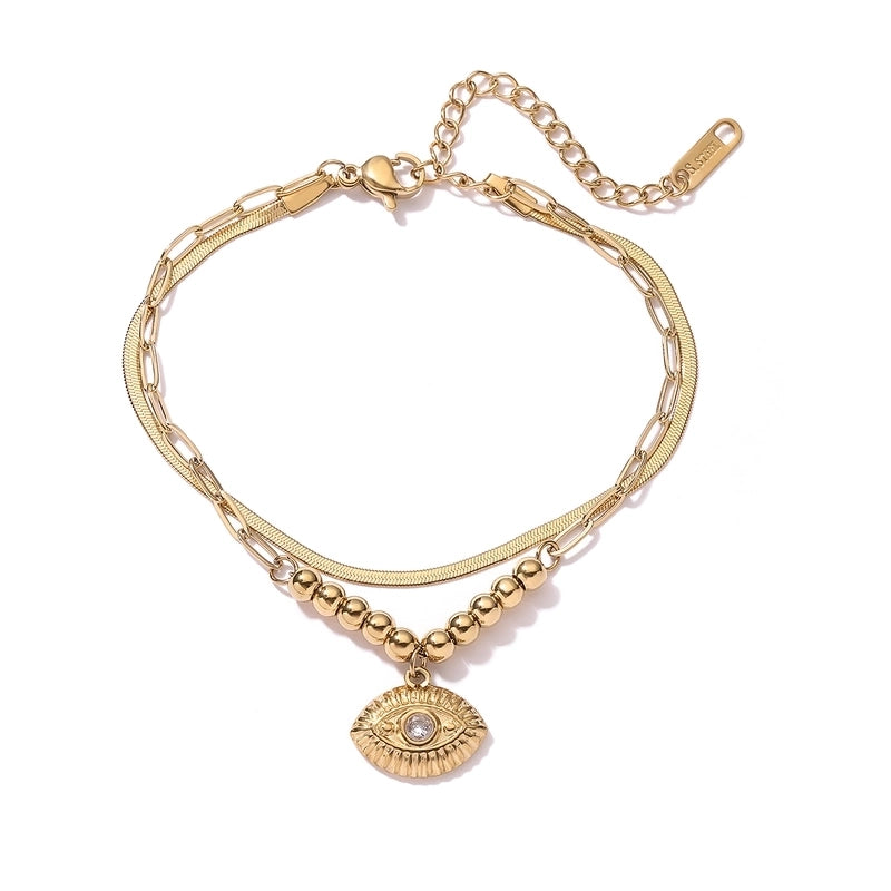 Retro Minimalist Commute Devil's Eye 304 Stainless Steel Zircon Paperclip Chain Snake Chain Bracelets In Bulk Stainless Steel Bracelets