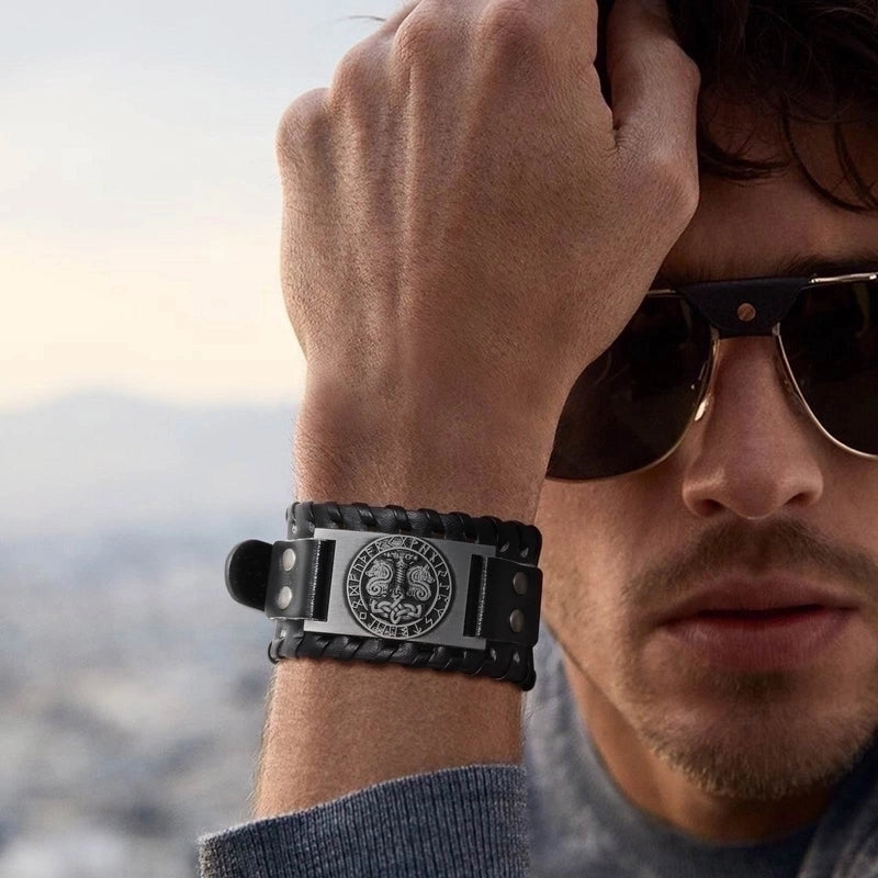 Retro Punk Life Tree Pu Leather Alloy Magnetic Men's Bangle