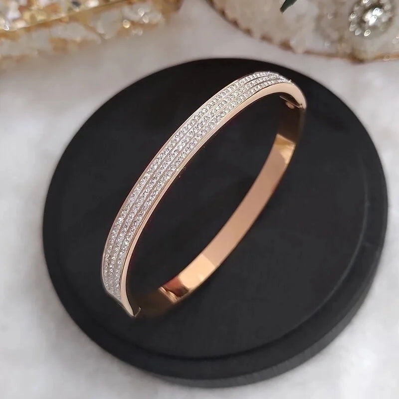 Retro Round Titanium Steel Inlay Zircon Bangle 1 Piece
