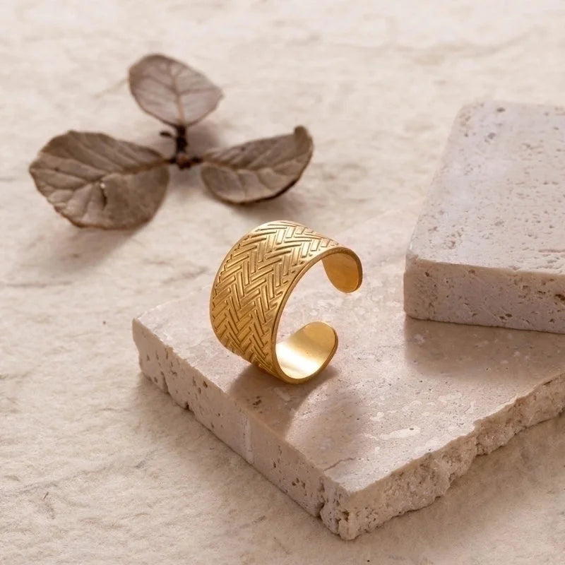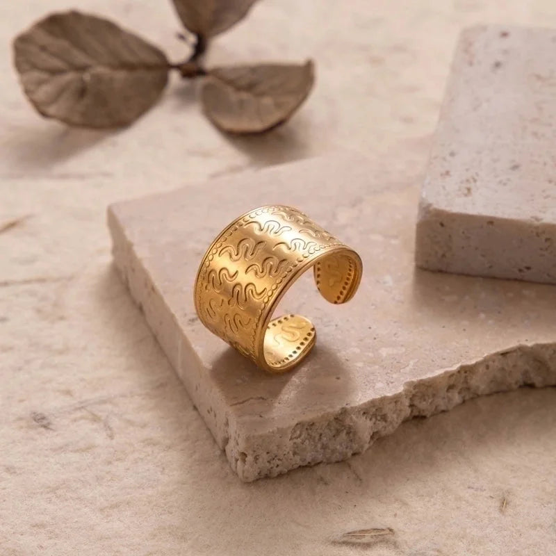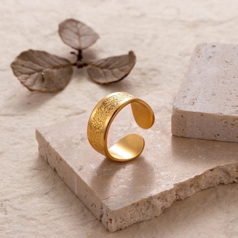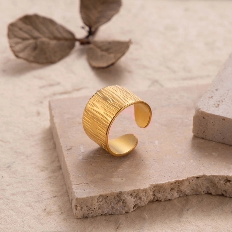 Retro Solid Color 304 Stainless Steel Plating Wide Band Ring Open Ring