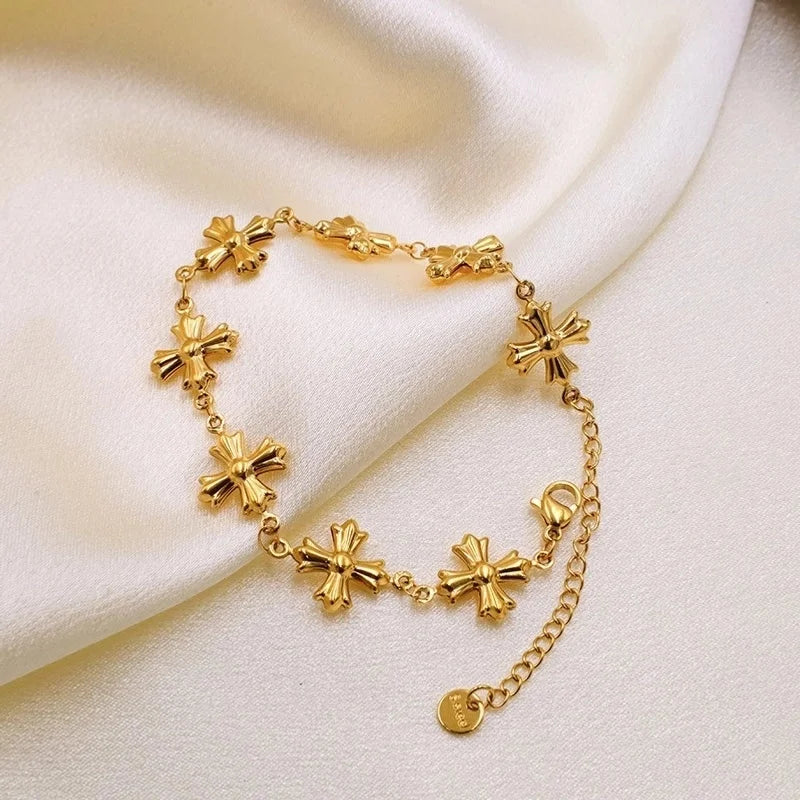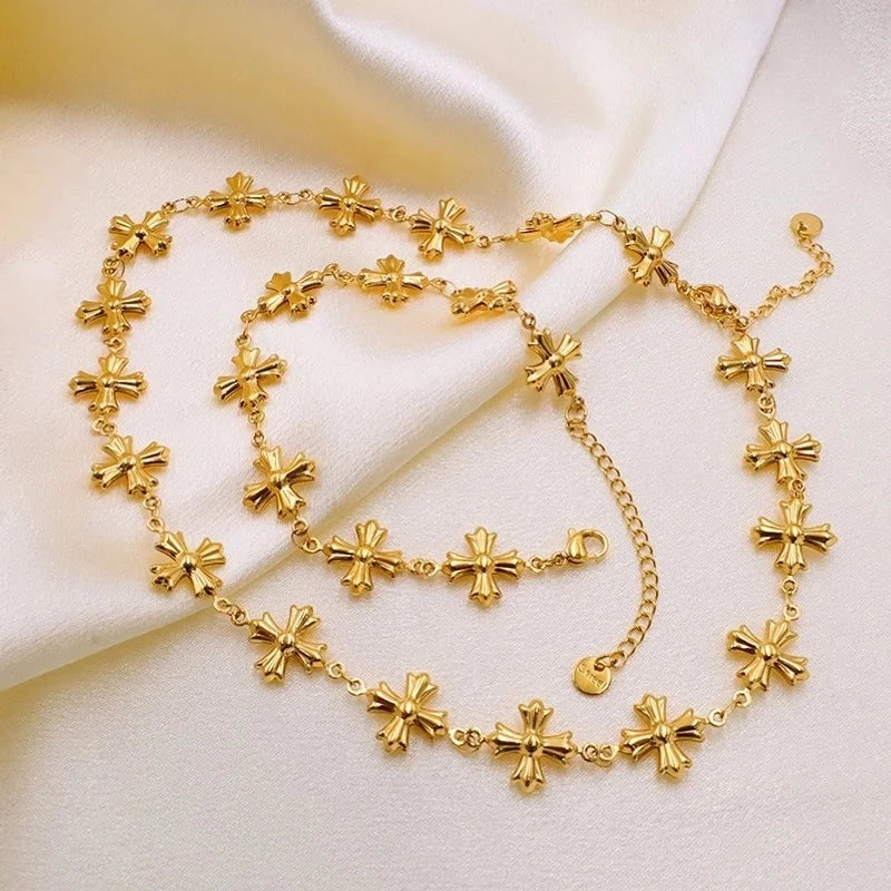 Retro Vacation Geometric Cross Titanium Steel Bracelets Necklace
