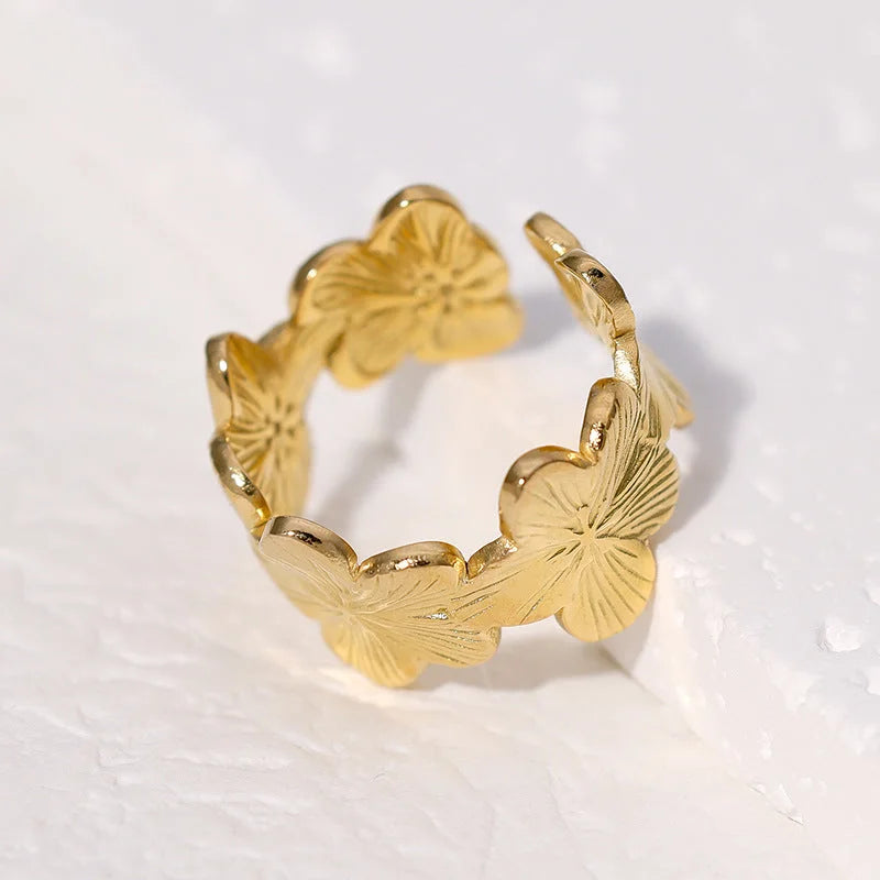 Rustic Open Ring Flower Stainless Steel Electroplating Rings