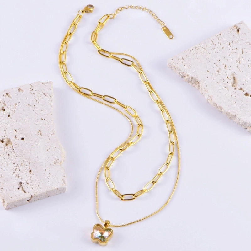 Shiny IG Style Geometric Butterfly 304 Stainless Steel Zircon Inlay Stainless Steel Necklaces