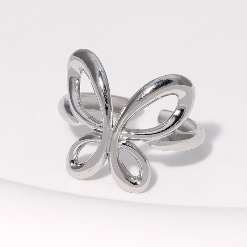 304 Stainless Steel 18K Gold Plated Minimalist Plating Butterfly Open Rings