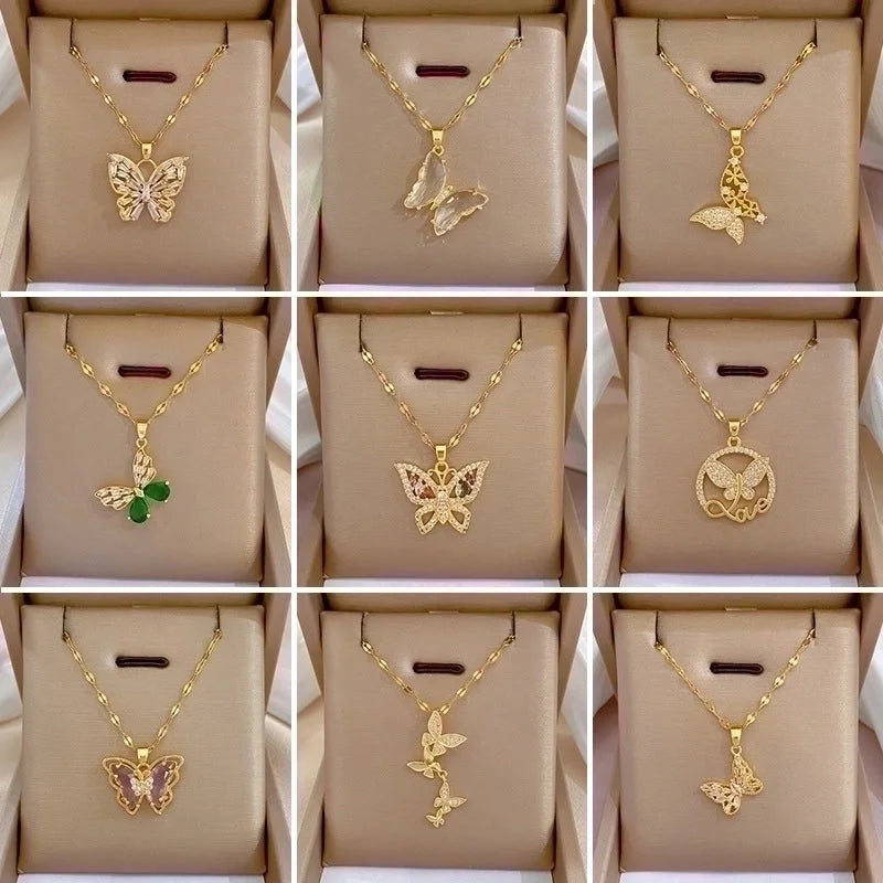 Minimalist Butterfly Titanium Steel Copper Plating Inlay Zircon Pendant Necklace