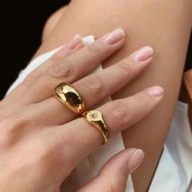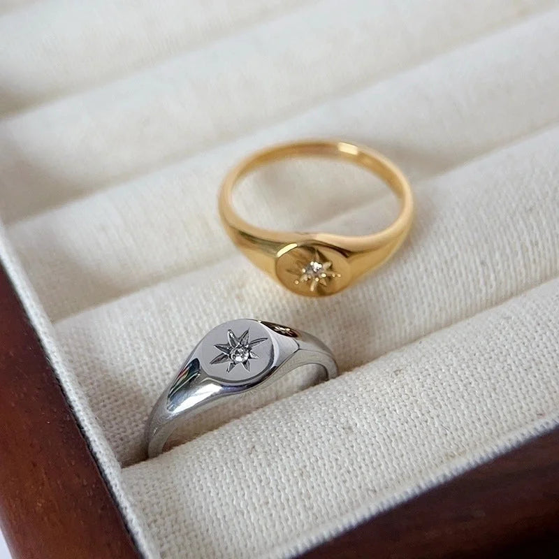 Minimalist Classic Style Star Titanium Steel Inlay Artificial Gemstones Rings