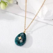 3 Pieces Minimalist Cross Water Droplets Lightning Stainless Steel Natural Stone Plating Pendant Necklace