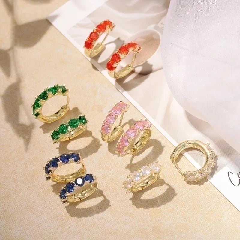 Minimalist C Shape Plating Inlay Copper Zircon 14K Gold Plated Earrings