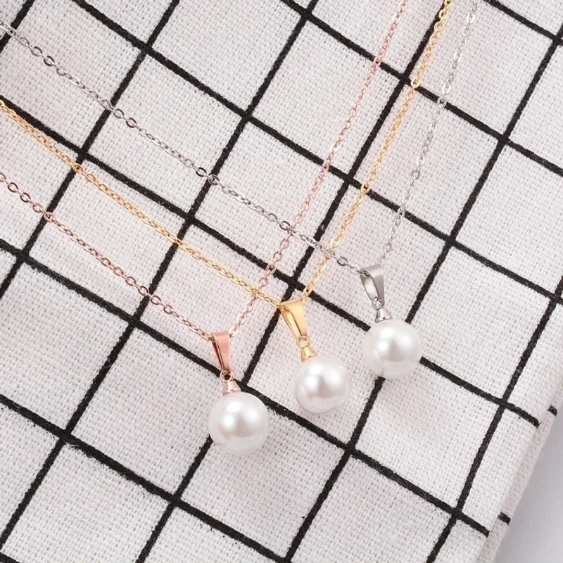 Minimalist Leaf 304 Stainless Steel Titanium Steel Artificial Pearls 18K Gold Plated Rose Gold Plated Inlaid Shell Inlaid Gold Necklace