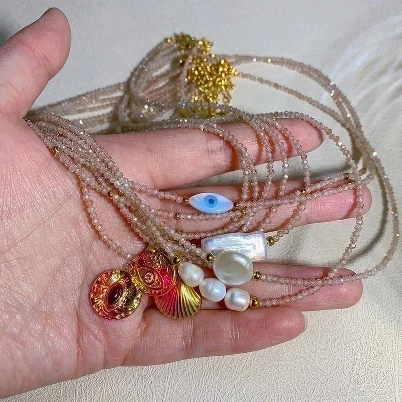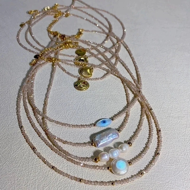 Minimalist Letter Stainless Steel Shell Beaded Plating Pendant Necklace