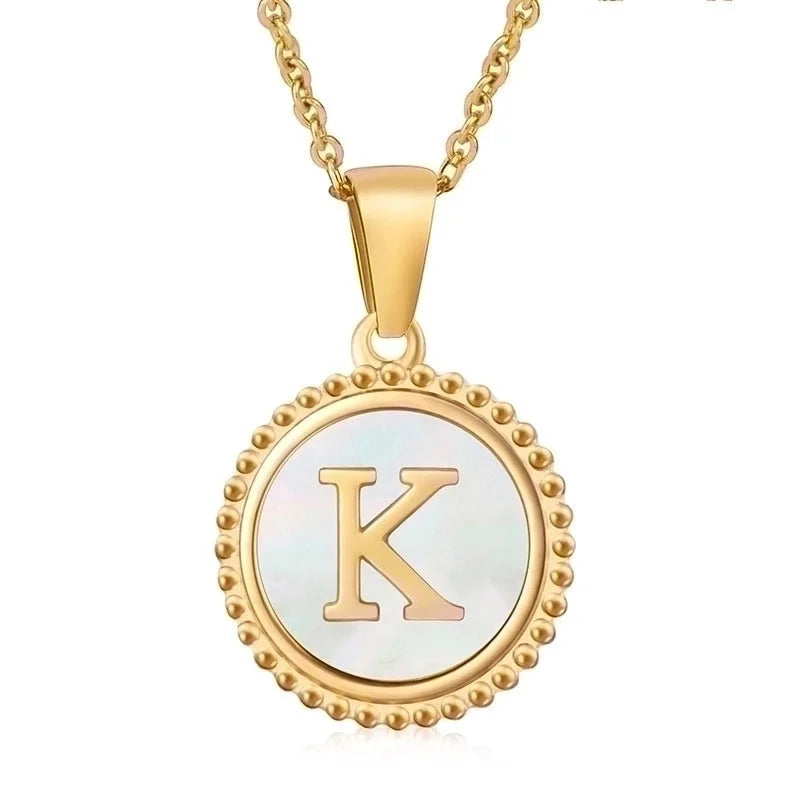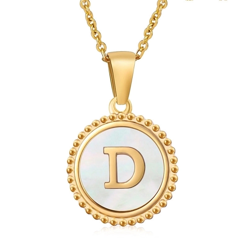 Minimalist Round Letter Stainless Steel Inlay Shell Pendant Necklace