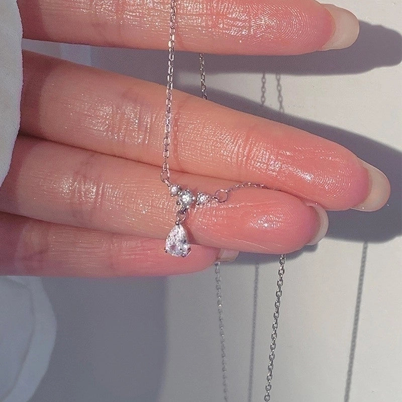 Minimalist Solid Color Copper Inlay Rhinestones Silver Plated Bracelets Necklace