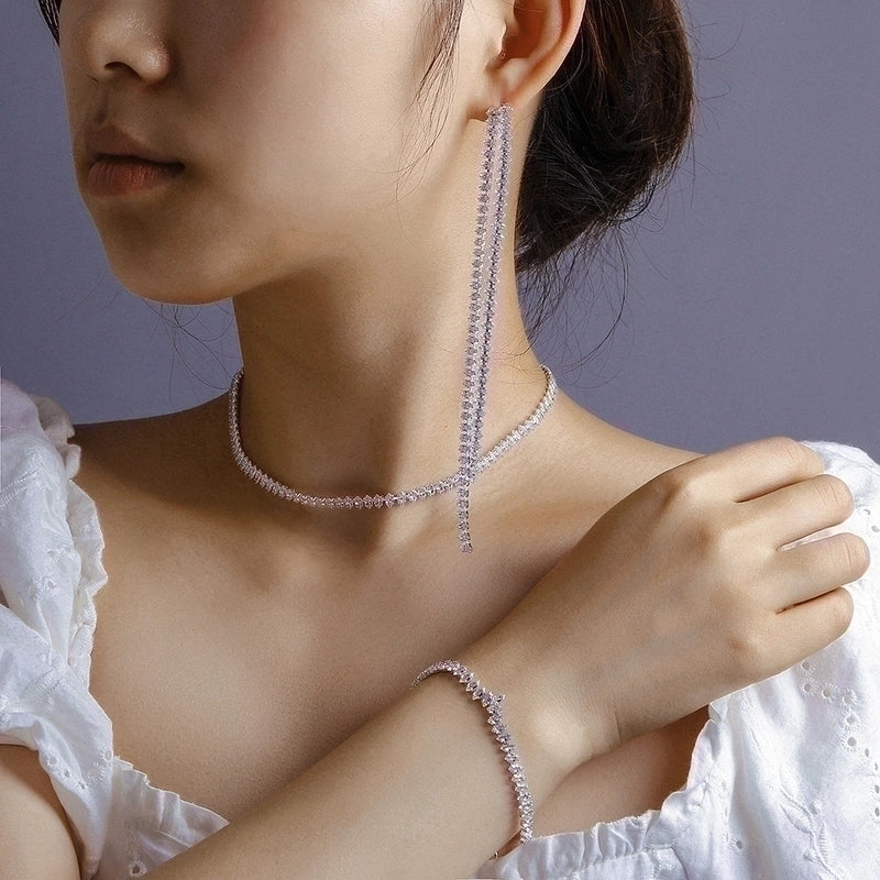 Minimalist Solid Color Rhinestone Inlay Zircon Jewelry Set