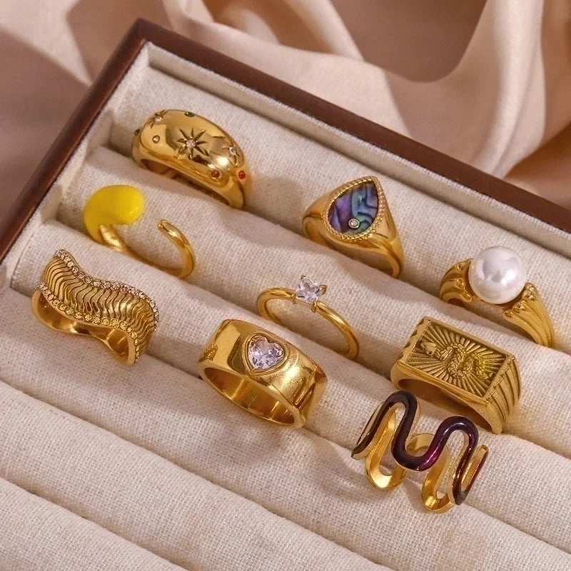 Minimalist Solid Color 304 Stainless Steel Pearl Zircon 18K Gold Plated Plating Inlay Rings