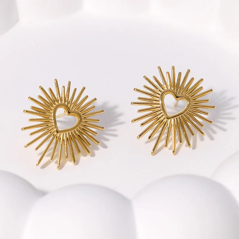 Stripe Heart Stainless Steel Electroplating Stud Earrings