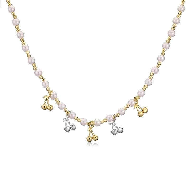Sweet Cherry Strawberry Copper Enamel Multi Charms Necklace