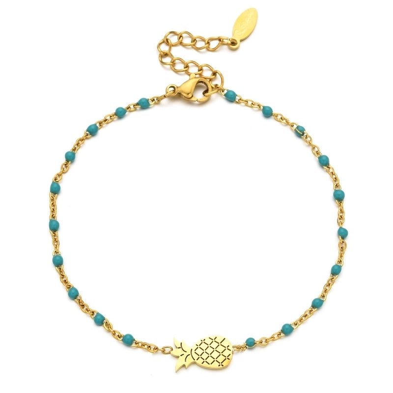 Sweet Fruit Pineapple Stainless Steel Enamel Plating Bracelets