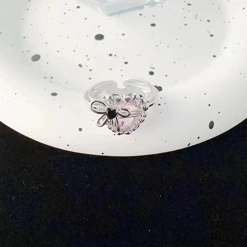 Sweet Geometric Heart Shape Bow Knot Copper Plating Inlay Zircon Open Rings