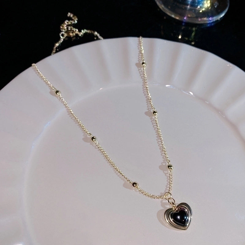 Sweet Heart Shape Crown Bow Knot Titanium Steel Copper Inlay Zircon Pendant Necklace