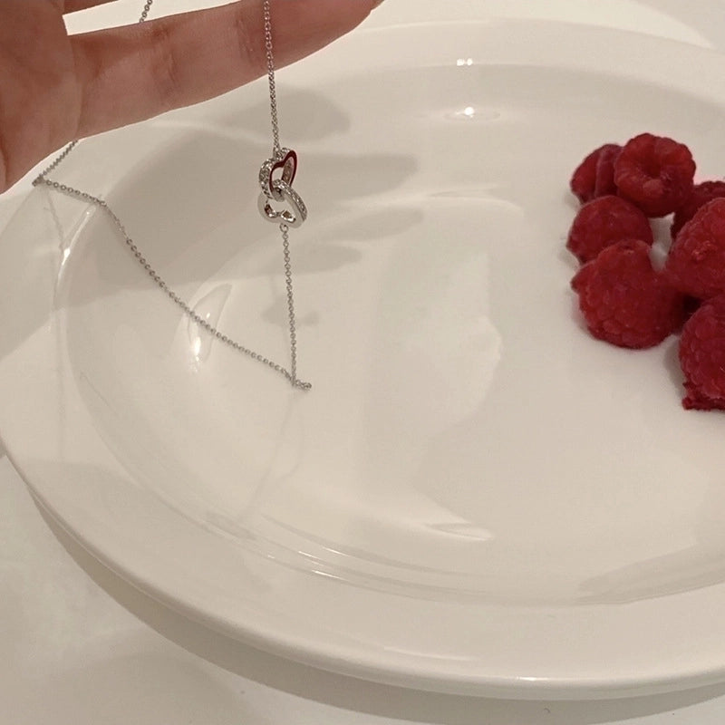 Titanium Steel Copper Sweet Plating Inlay Heart Shape Zircon Pendant Necklace