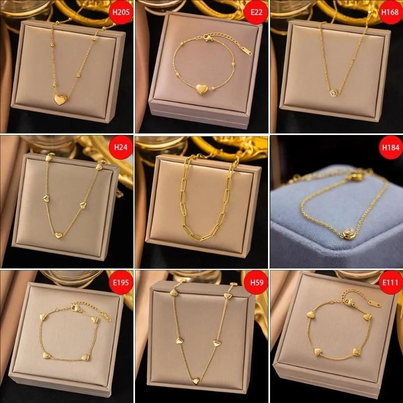Sweet Minimalist Classic Style Geometric Heart Shape Titanium Steel Plating Bracelets Necklace
