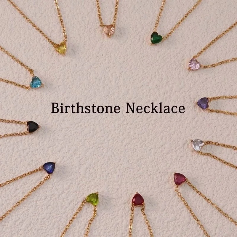 Sweet Minimalist Commute Heart Shape 304 Stainless Steel Rhinestones Birthstone 18K Gold Plated Inlay Necklace