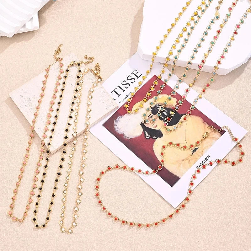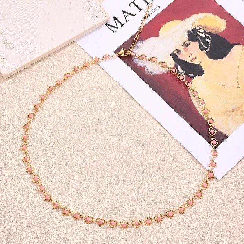 Sweet Minimalist Double Heart Heart Shape 304 Stainless Steel 18K Gold Plated Polishing Enamel Plating Necklace
