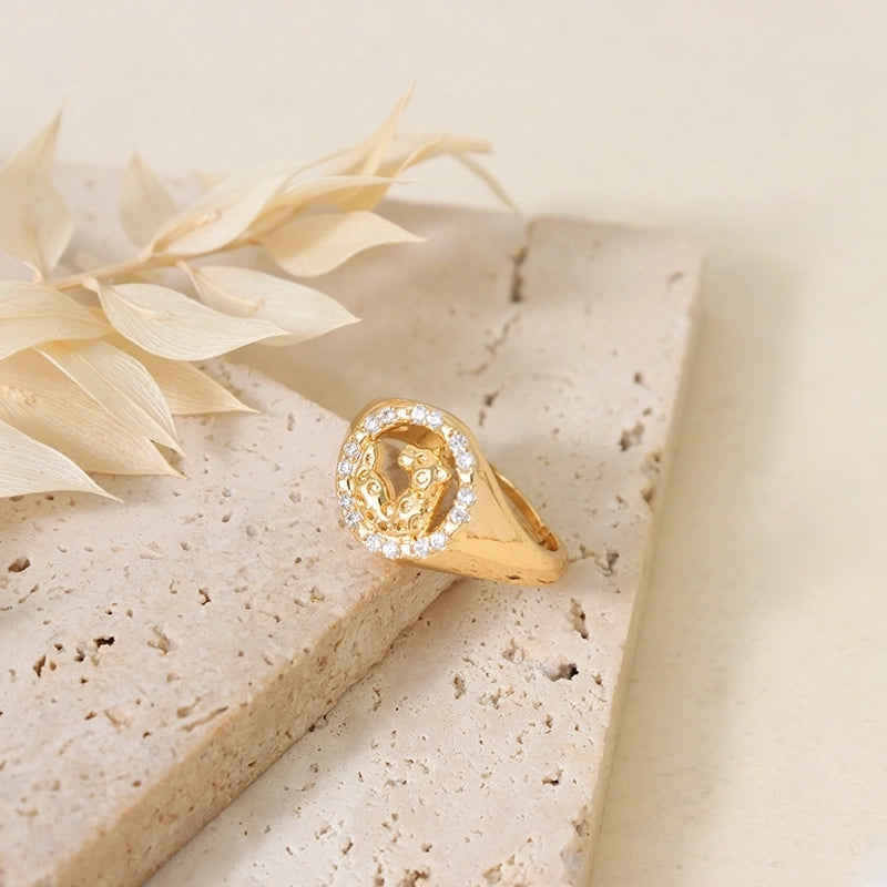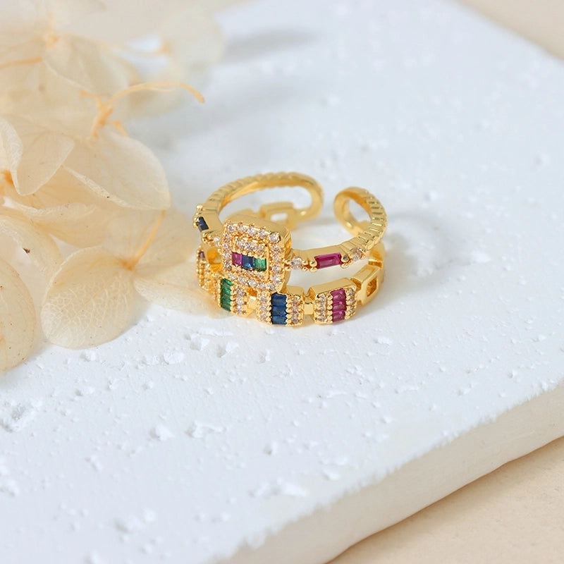 Sweet Round Copper Plating Inlay Rhinestones 18k Gold Plated Open Rings