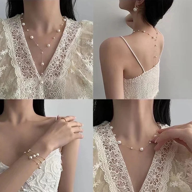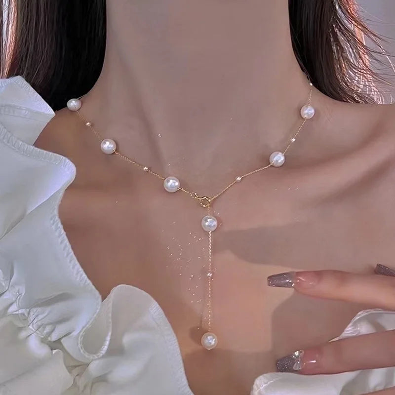 Sweet Round Titanium Steel Tassel Pearl Plating Pendant Necklace 1 Piece