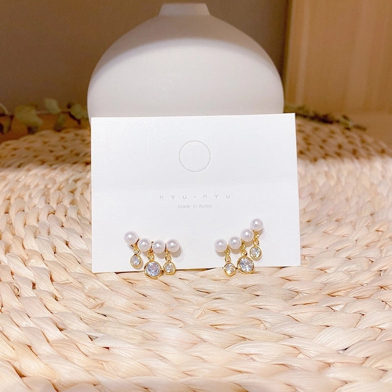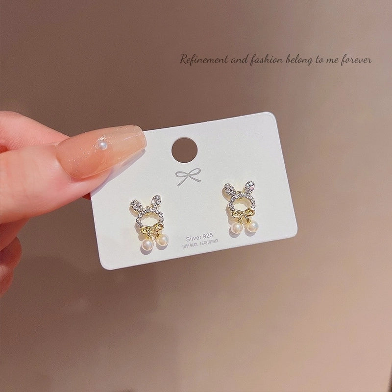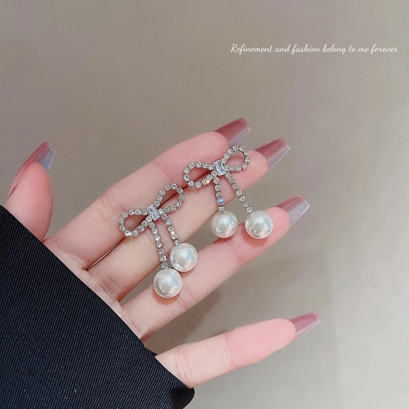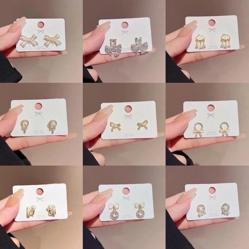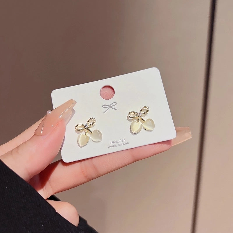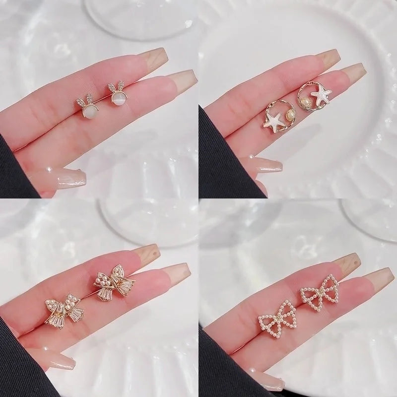Sweet Star Heart Shape Bow Knot Copper Inlay Artificial Pearls Rhinestones Opal Earrings 1 Pair
