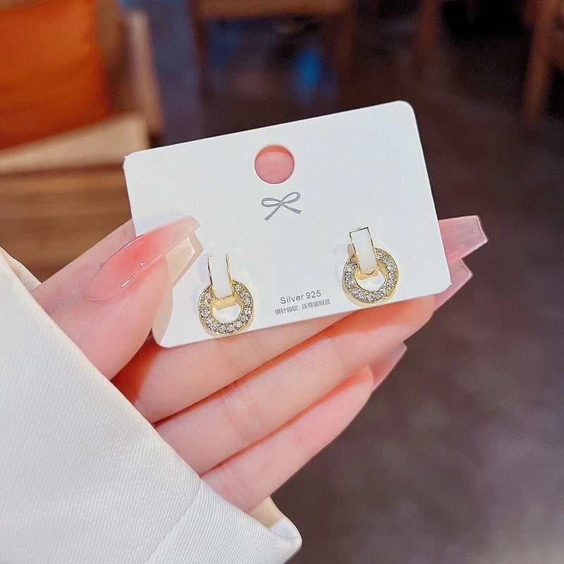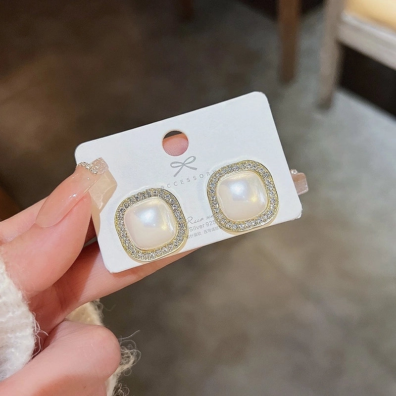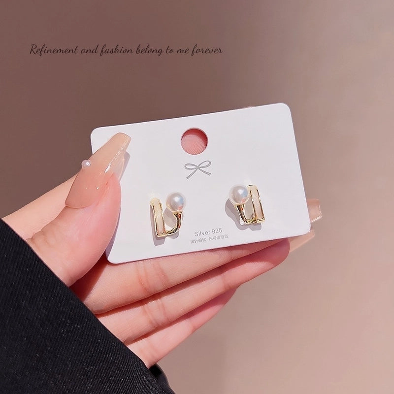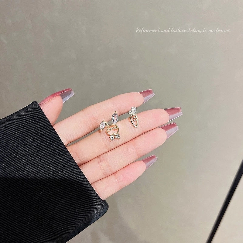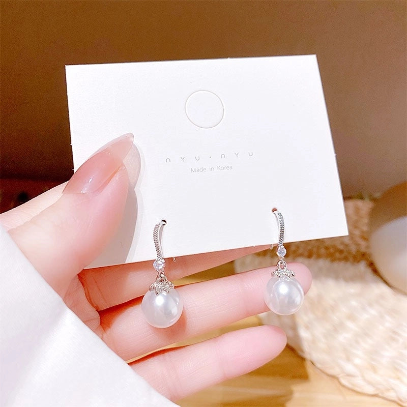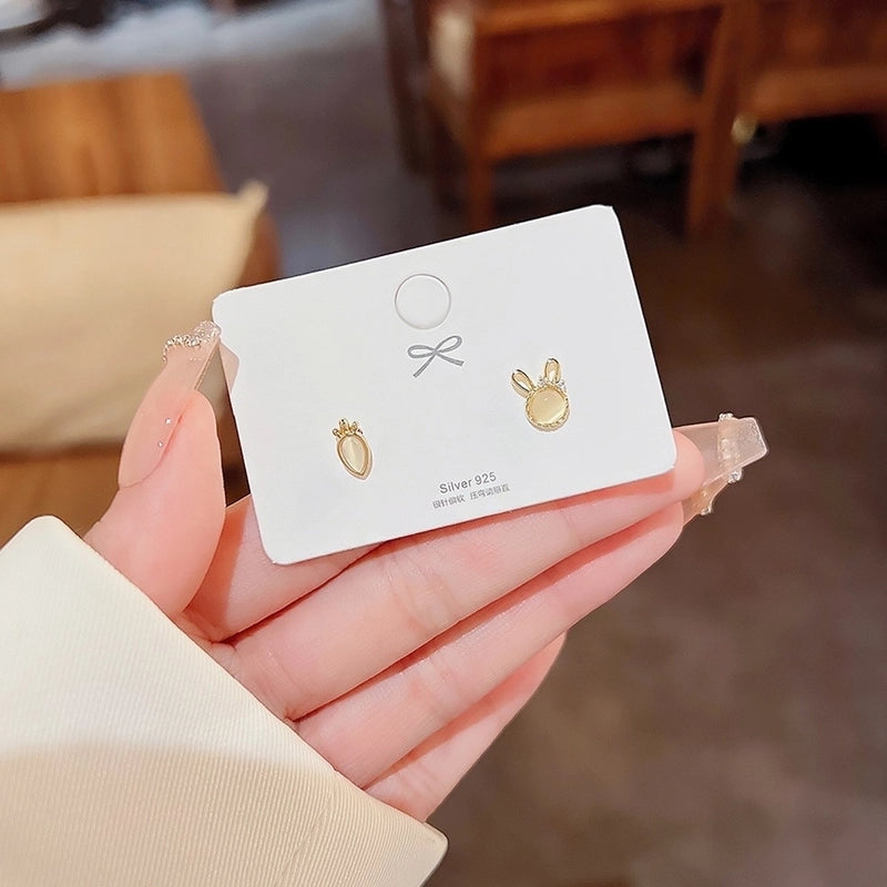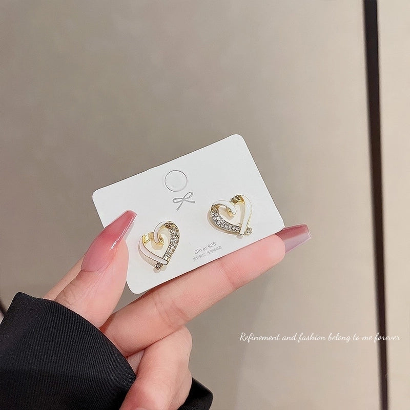 Sweet Star Heart Shape Bow Knot Copper Inlay Artificial Pearls Rhinestones Opal Earrings 1 Pair