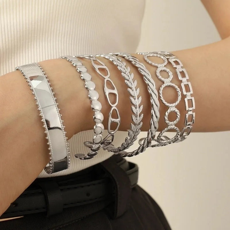 Titanium Steel 18K Gold Plated IG Style Cool Style Plating Circle Waves Bangle